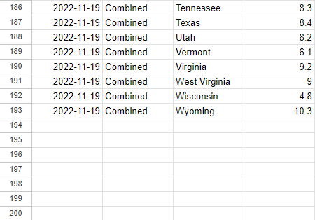 Let’s build a live-updated visual to help viewers quickly see their state’s current risk of a viral infection by the three most common viruses (flue, Covid, and a cold/RSV). We’ll use Zapier for automation, CDC.Gov for data, Google to store our csv values, and Tableau for the live, interactive visual! (Skip to the dashboard)